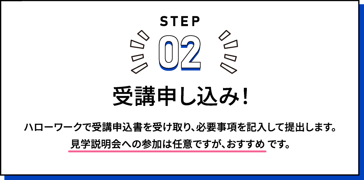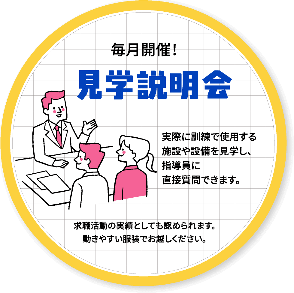 スキルアップしたいけど、お金が心配・・・ という人も大丈夫! 受講料は一切かかりません。(ただし、テキストや作業服などは自己負担となりますのでご注意を!)